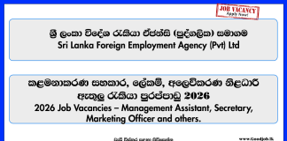 Management Assistant, Secretary, Marketing Officer, Manager – Sri Lanka Foreign Employment Agency (Pvt) Ltd...