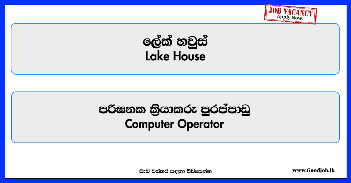 Digital Programme Editor, Graphic Designer and Computer Operator – Lake House...