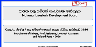 Driver, Field Assistant, Livestock Assistant – National Livestock Development Board (NLDB)...