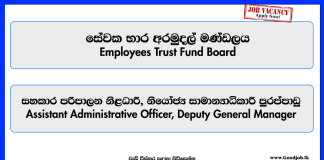 Deputy General Manager, Assistant Administrative Officer – Employees Trust Fund Board...
