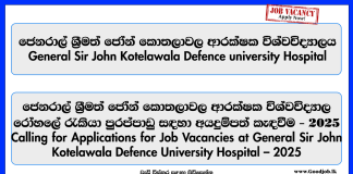 Technician, Attendant, Driver – General Sir John Kotelawala Defence university Hospital...