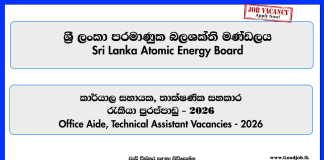 Office Aide, Technical Assistant – Sri Lanka Atomic Energy Board Vacancies...