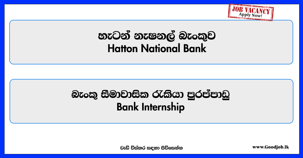 Bank Internship for School Leavers – Hatton National Bank 2025