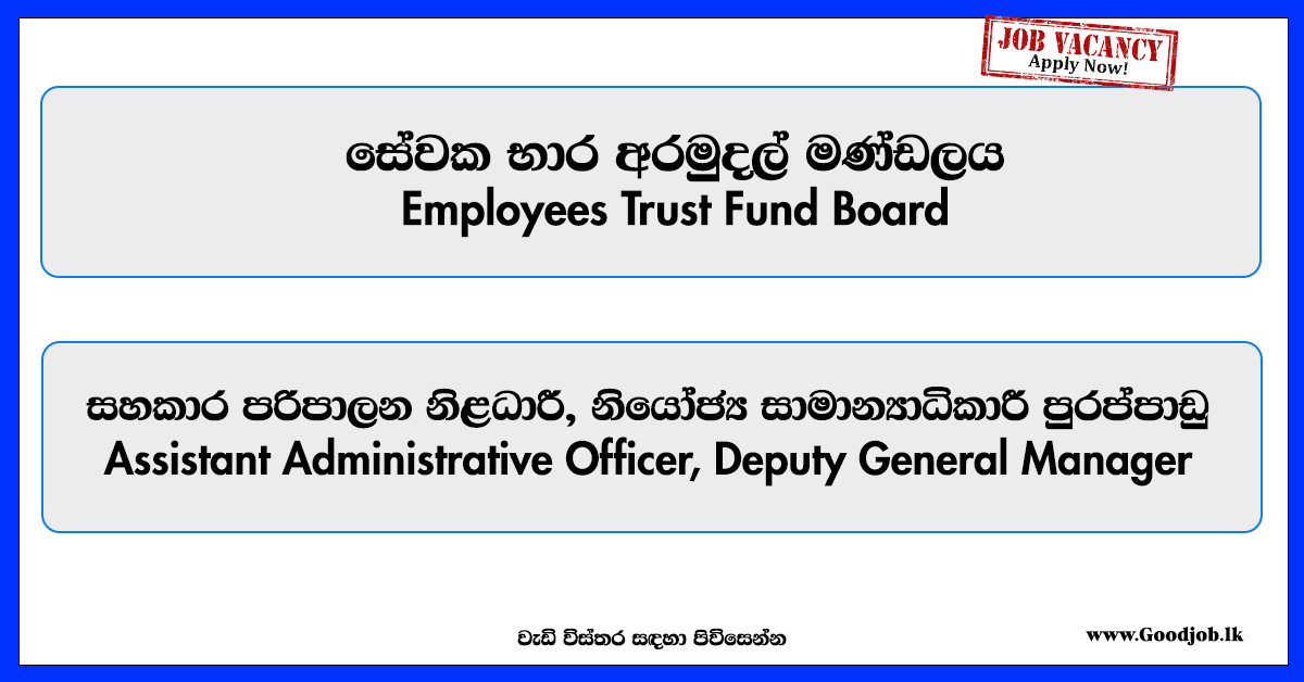 Deputy General Manager, Assistant Administrative Officer – Employees Trust Fund Board Job Vacancies 2025
