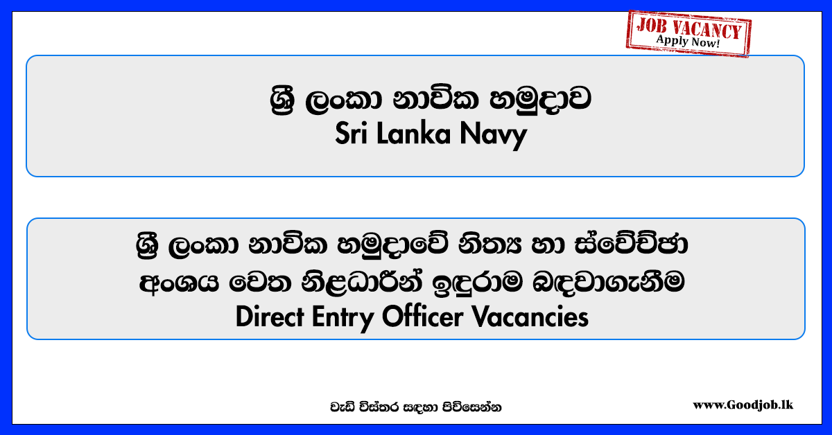 Direct Entry Officer Vacancies in the Regular & Volunteer Naval forces – Sri Lanka Navy JoVacancies 2026
