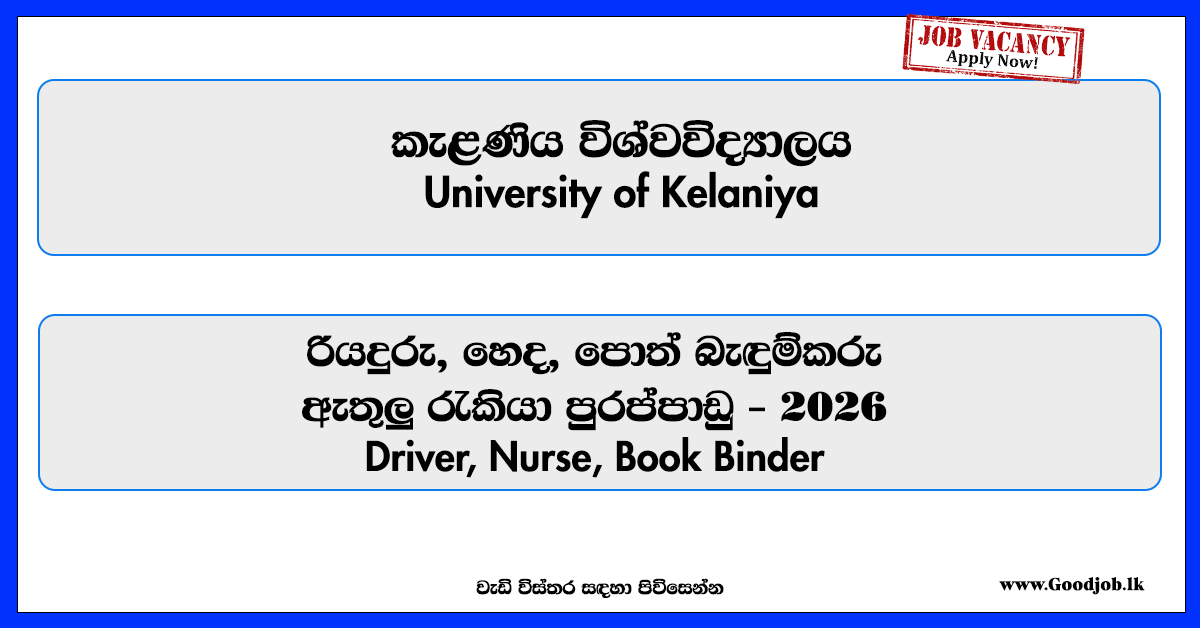 Driver, Nurse, Book Binder, Fitter, Tractor Operator – University of Kelaniya Job Vacancies 2026