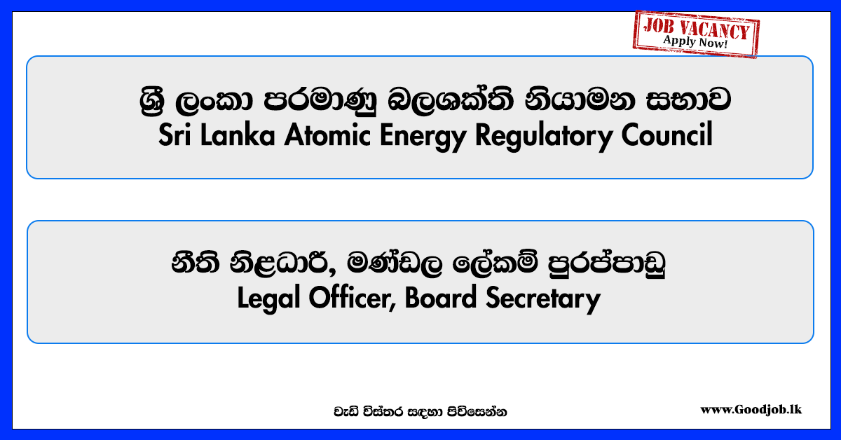 Legal Officer, Board Secretary – Sri Lanka Atomic Energy Regulatory Council Job Vacancies 2025
