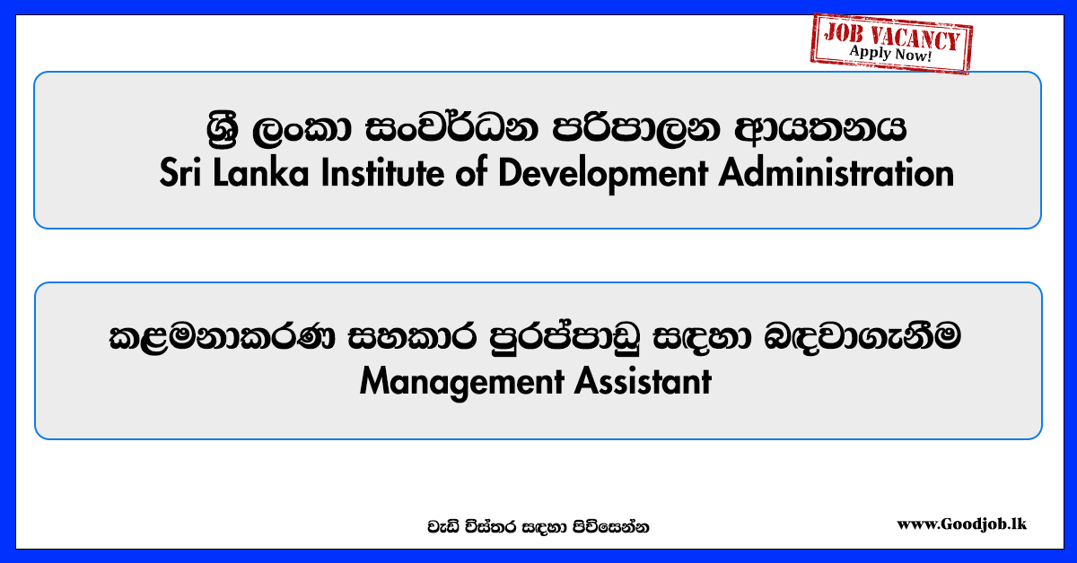 Management Assistant – Sri Lanka Institute of Development Administration Job Vacancies 2025