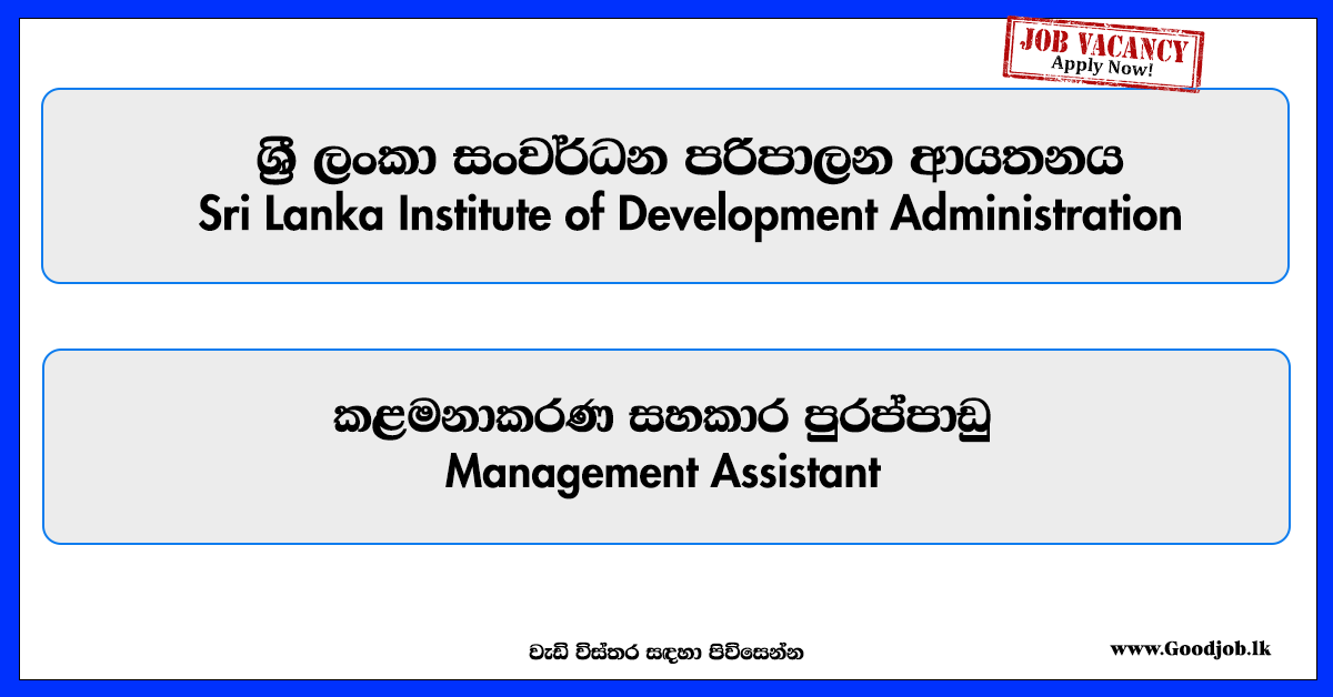 Management Assistant – Sri Lanka Institute of Development Administration (SLIDA) Job Vacancies 2025