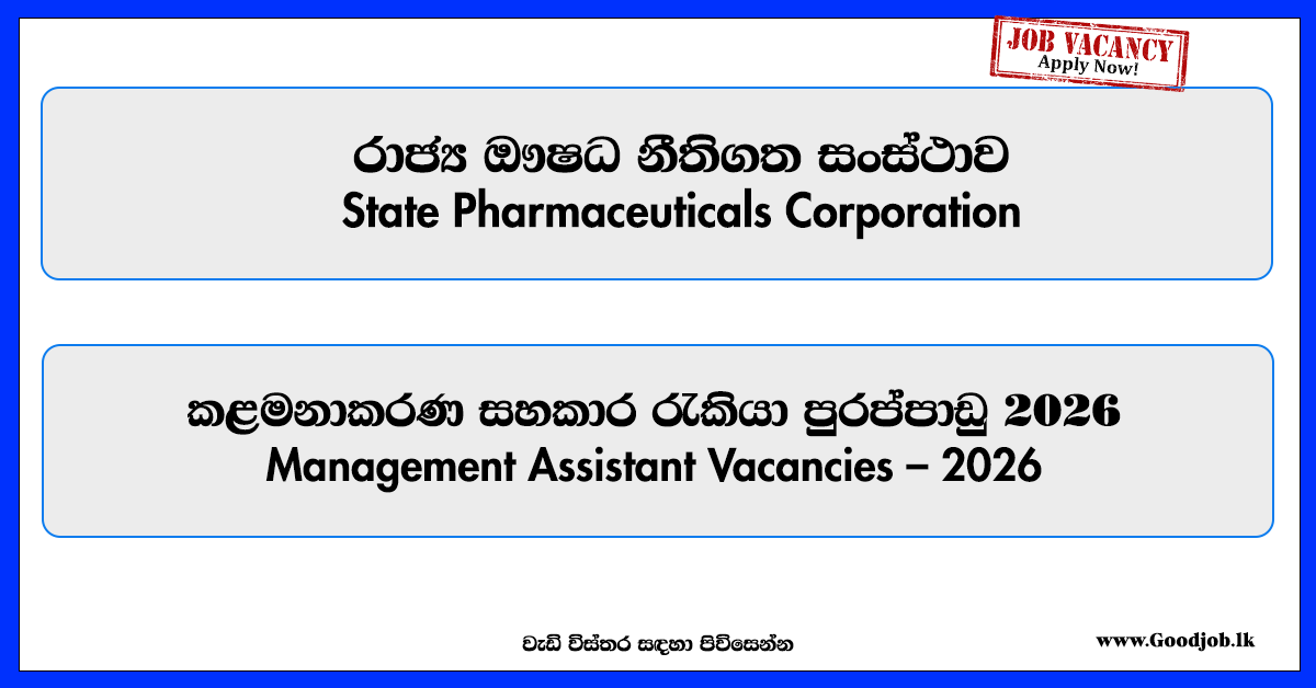 Management Assistant – State Pharmaceuticals Corporation Job Vacancies 2026