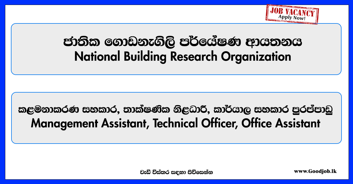 Management Assistant, Technical Officer, Office Assistant – National Building Research Organization Job Vacancies 2025
