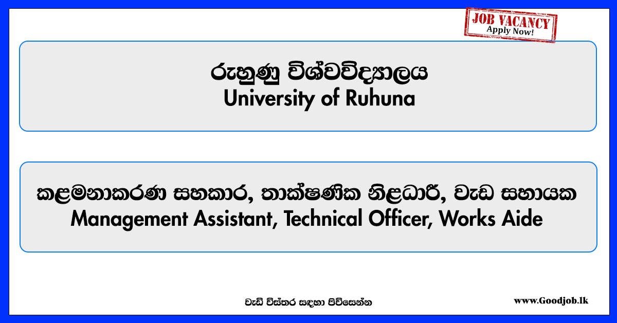 Management Assistant, Technical Officer, Works Aide – University of Ruhuna Job Vacancies 2026