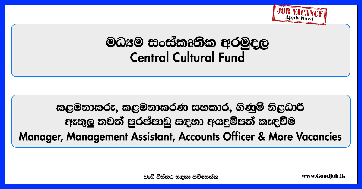 Manager, Management Assistant & More Vacancies – Central Cultural Fund 2025