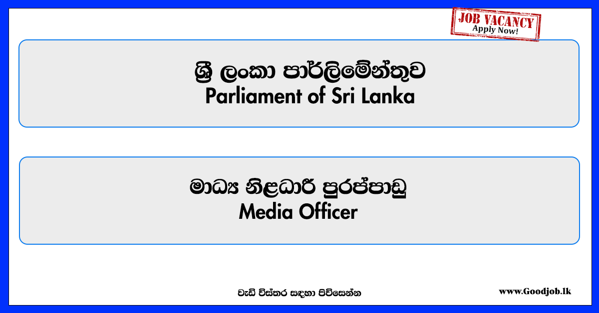 Media Officer – Parliament of Sri Lanka Job Vacancies 2025