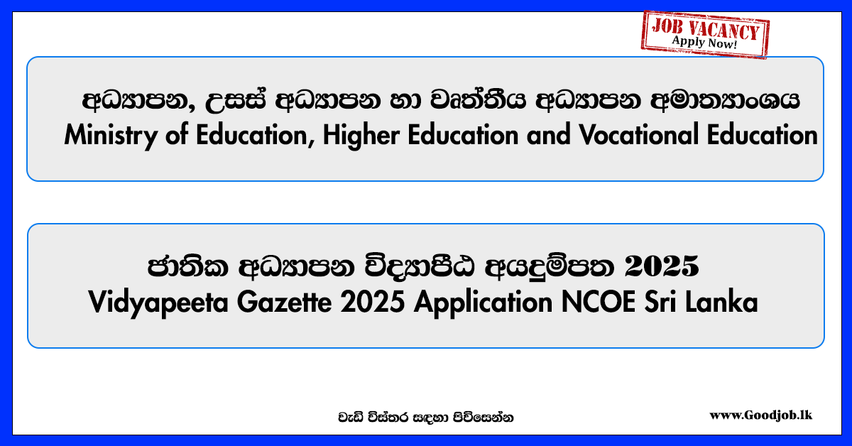 The Ministry of Education, Sri Lanka has opened admissions for the National Diploma in Teaching Course at National Colleges of Education, based on the G.C.E. (A/L) 2023 & 2024 results.