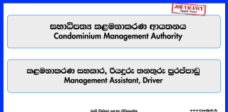Management Assistant, Driver – Condominium Management Authority Job Vacancies 2026